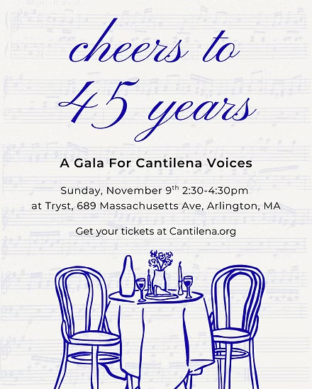 Celebrate 45 years of Cantilena with an afternoon of music, community, and celebration. Enjoy passed appetizers and drinks, bid in a silent auction, and be entertained with a performance by Cantilena’s own voices, all in support of their upcoming season of choral music.